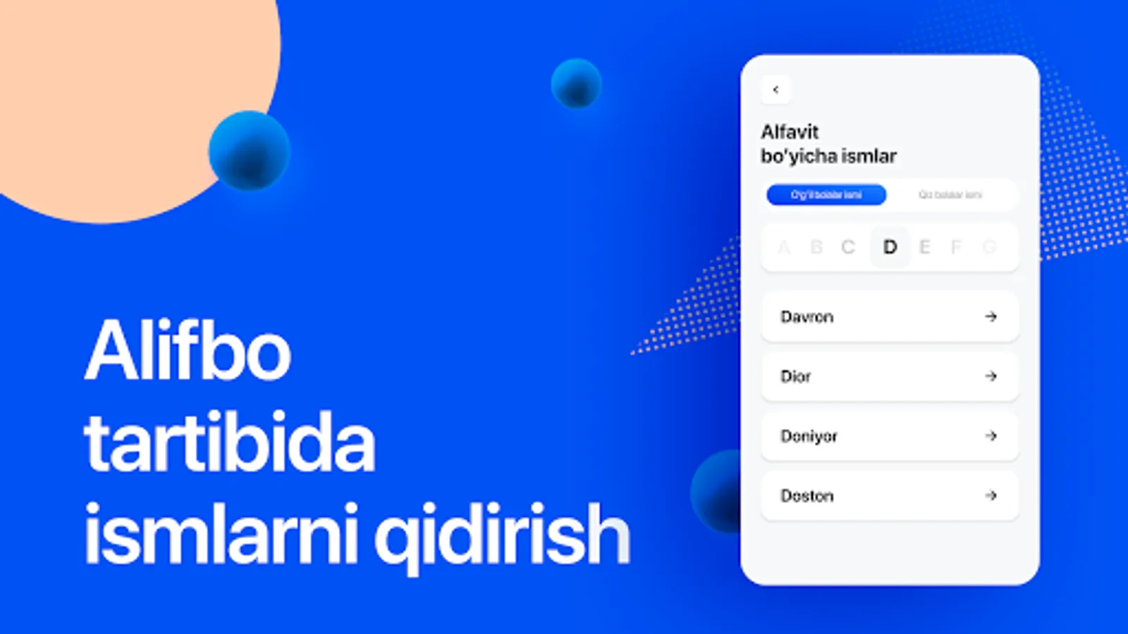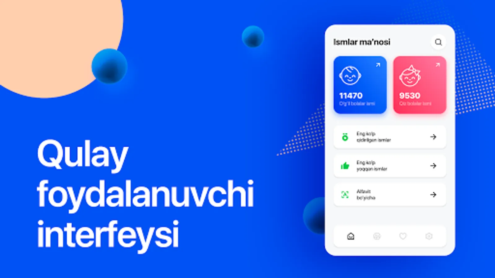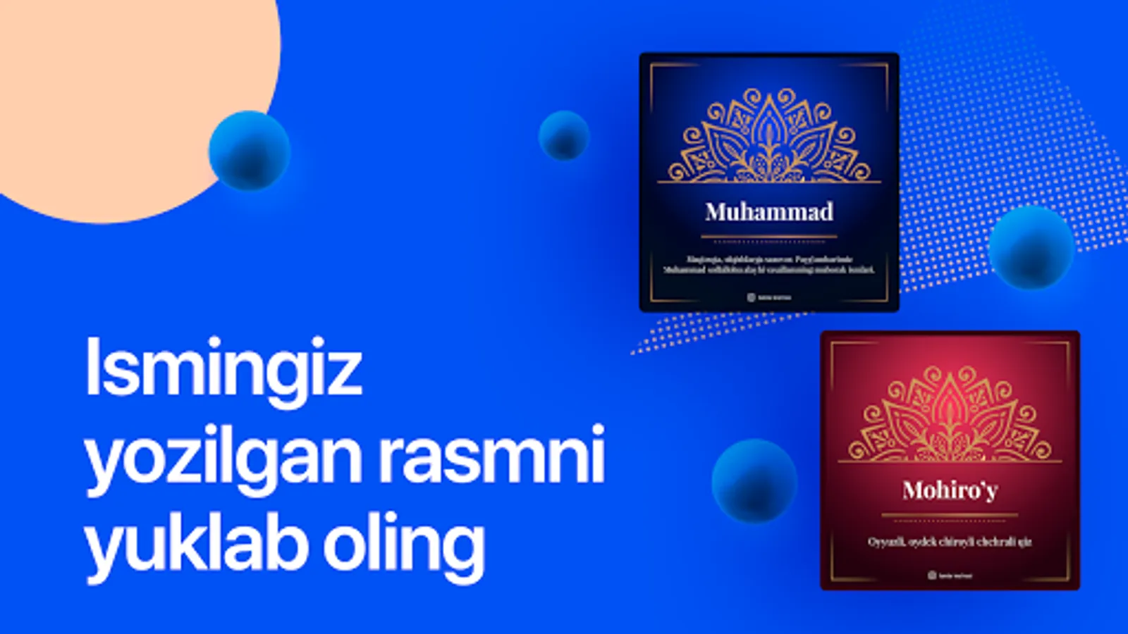 Learn the full meaning of the names of yourself and your loved ones in Uzbek through a beautifully designed and easy-to-use application: