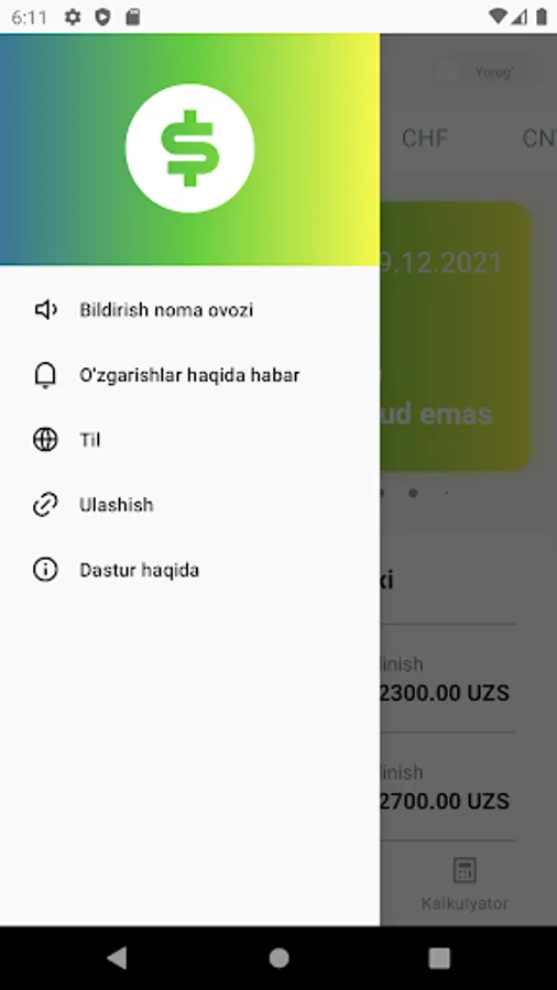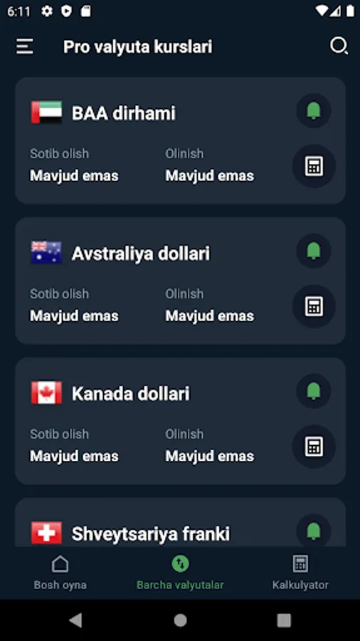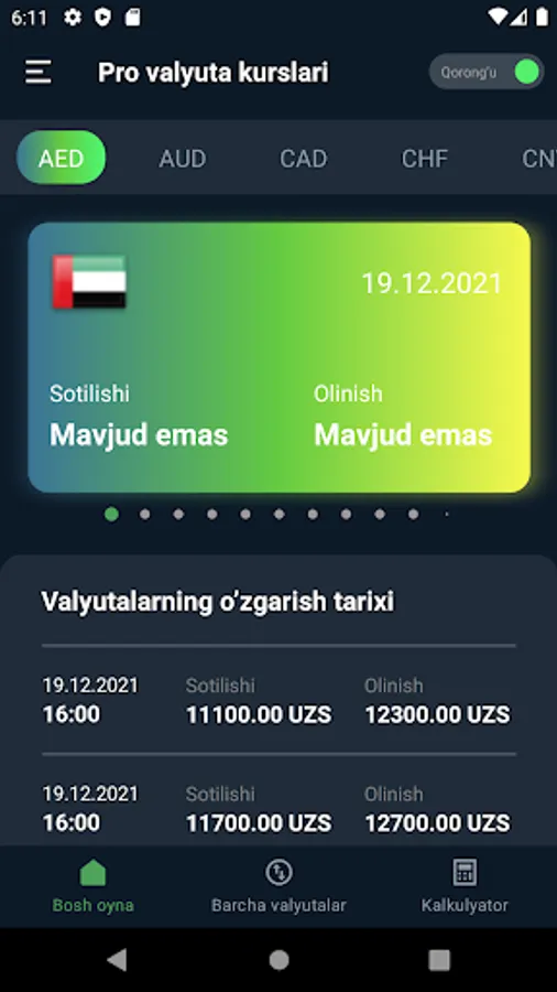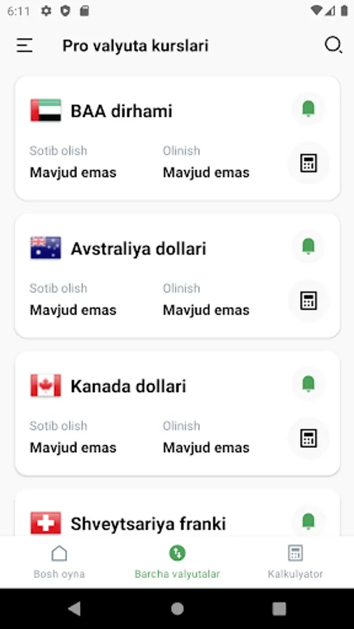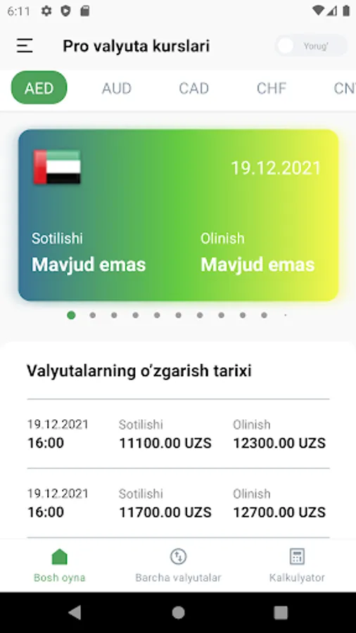Pro valyuta kurslari - 20 dan ortiq valyutalarni ma'lumotlarini ko'rsatib beradi.