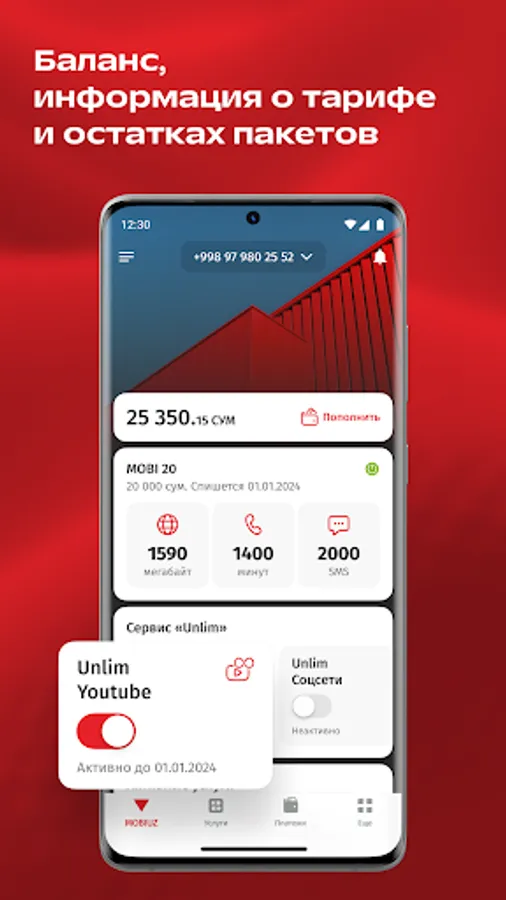 Install the mobile application "Mobiuz" and get a convenient service for managing your mobile communication services!