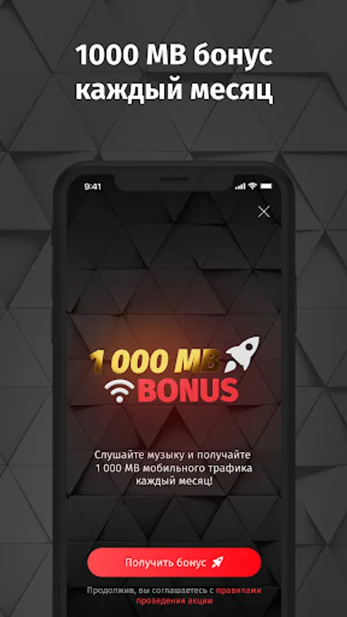 Trafikga pul sarflamang! Musiqani cheklovlarsiz va internet-trafikni sarflamagan holda tinglang. Endi hech narsa Sizni sevimli pleylistingizni tinglashldan to’xtatib qola olmaydi! Va yana har oy 1000 MB tekinga oling!