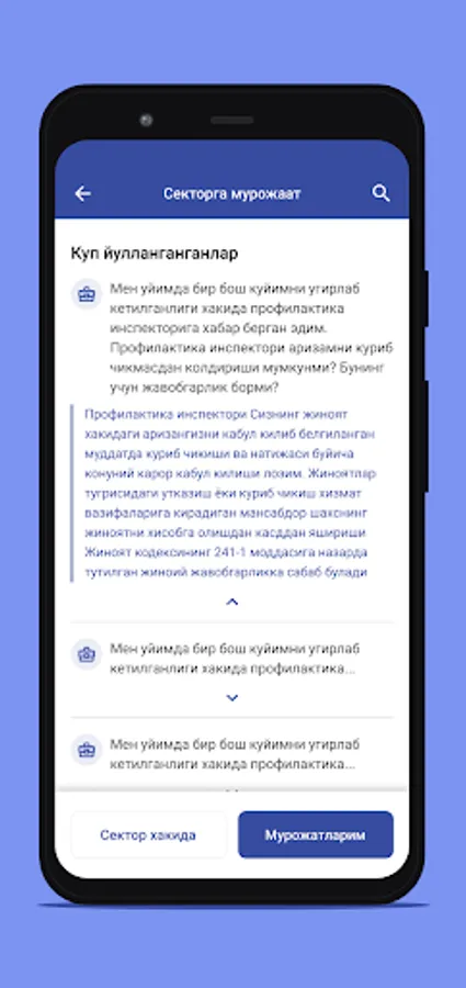 mahalla raisi, mahalla demografik maʼlumotlari va biriktirilgan sektor rahbari, shuningdek mahalla idorasi va sektor shtabining geojoylashuvi haqidagi maʼlumotlar, sektor faoliyatiga baho berish;