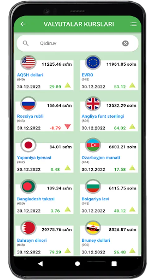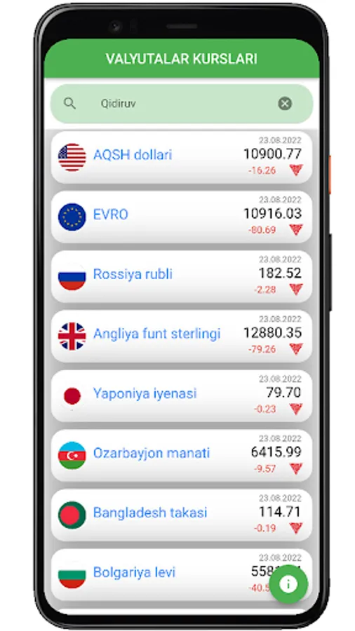 Turli valyutalarning so'mga nisbatan kurslari. Bu ma'lumotlar MB ning tekin apilar orqali olingan.