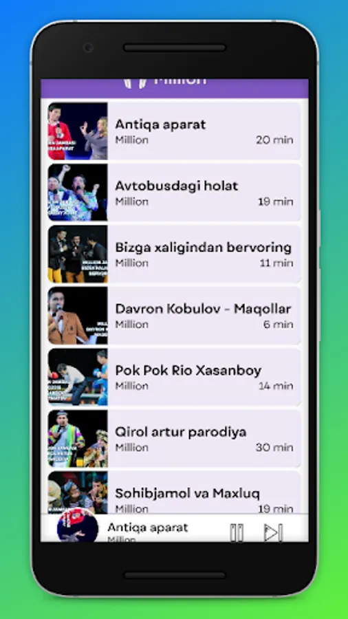 Ilovada Million Jamoasining Eng sara xazillari jam bo'lgan. Qvzda va yana bir necha joylarda qilingan prikollar ham o'rin olgan. Dastur juda tez vaqt oralig'ida yaratildi. Kamchiliklar bo'lsa developer mailiga murojaat qilishingiz mumkin.