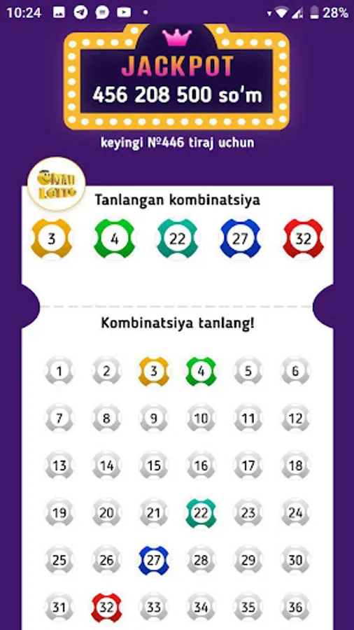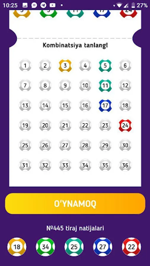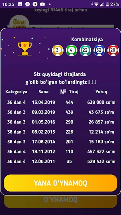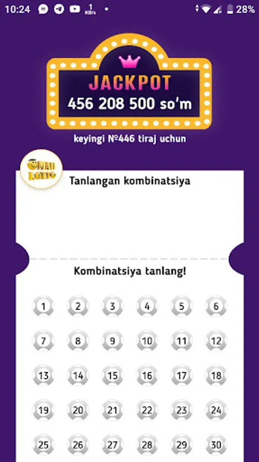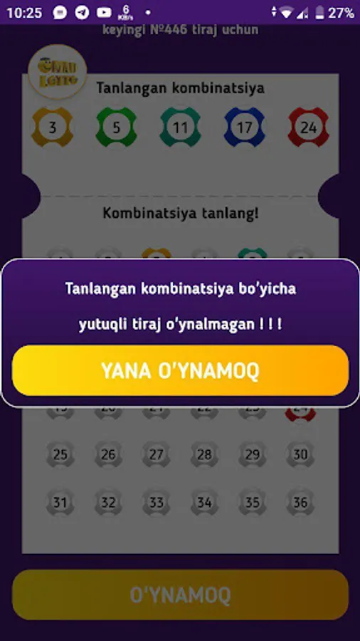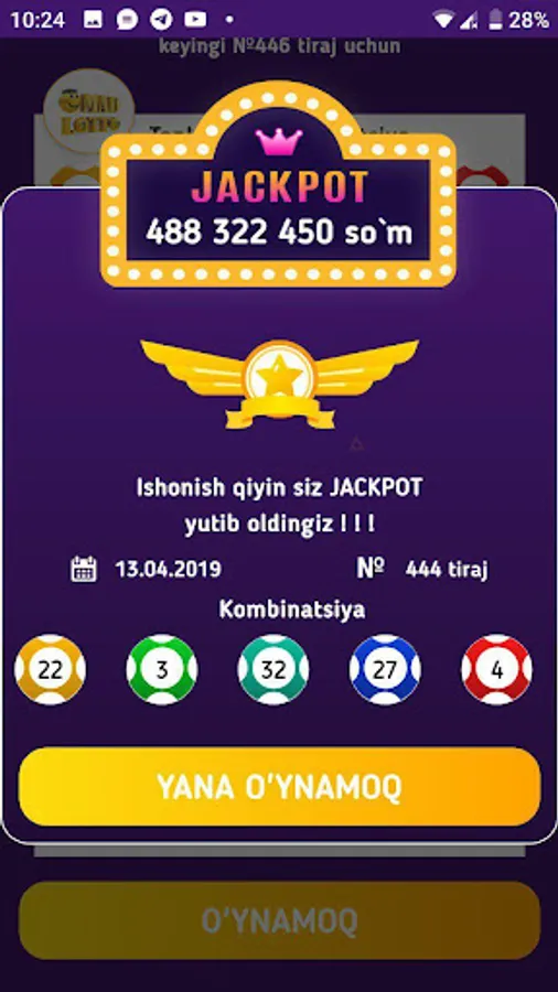 O'yinda shuningdek Jackpot va avvalgi tiraj natijalarini ko'rishingiz mumkin.