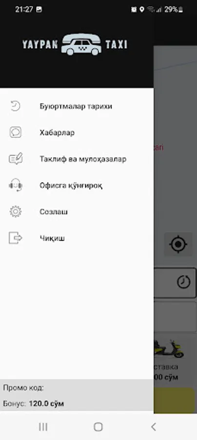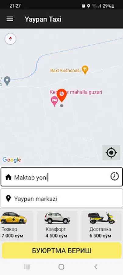 Yaypan Taxi mijozlari uchun mobil ilova.