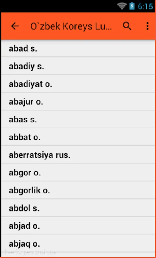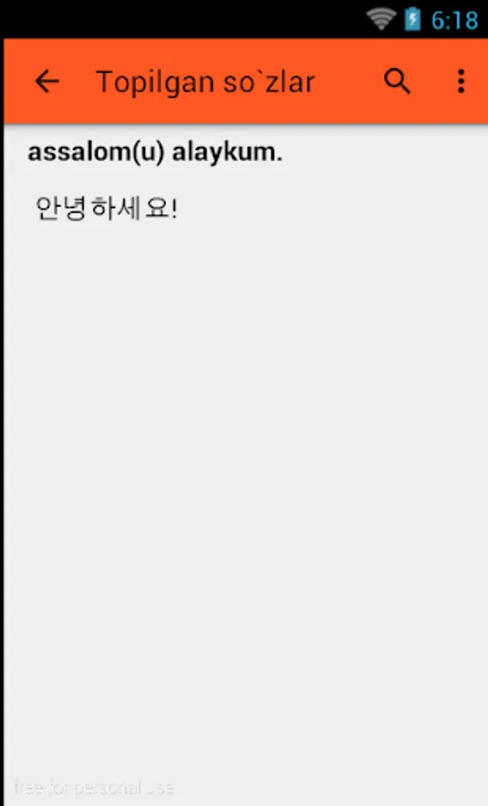 Uzbek Koreys Lugati 11000 tadan suz va haplardan iborat dasturdir. Suzlarni tepadagi kidirish amalidan foydalanib topishingiz mumkin. Kidiruv fakat uzbek-lotin harfid buladi. Topilgan suzni ustig bosilsa tarzhim oinasiga olib utadi.