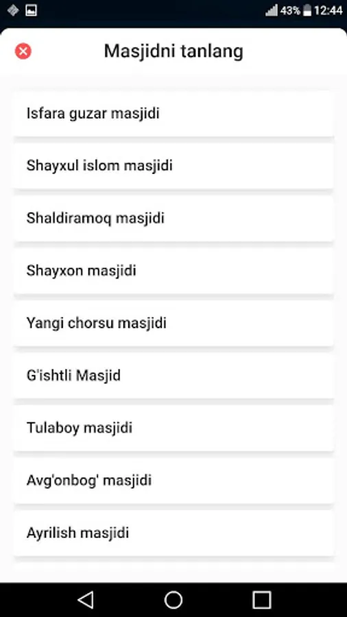 Admin tomonidan kiritilgan masjidlardagi namoz vaqtlari ko'rsatiladi
