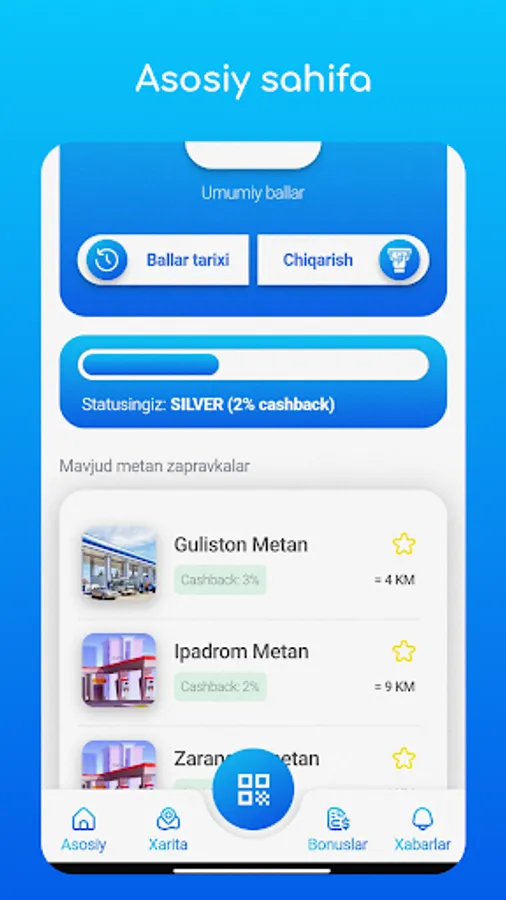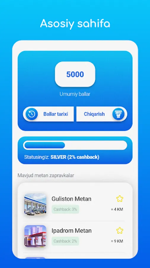 Avtomobillar uchun gaz narxi yuqorimi? Imperiya bilan avtomobilingizga yonilg'i quyish oson va foydali! Imperiya ilovasi O‘zbekistonda birinchi bo‘lib barcha gaz to‘ldirish xizmatlari uchun CashBack xizmatini taqdim etadi. Ushbu tizim juda aniq va ulardan foydalanish oson.