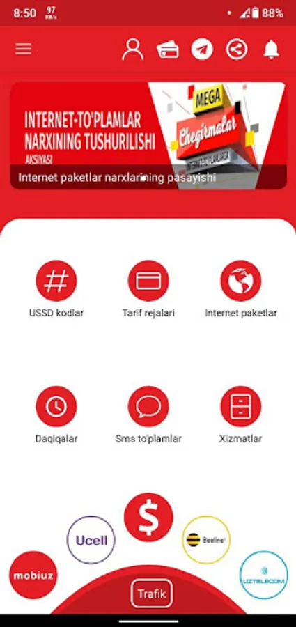 Arzon Internetlar - barcha mobil kompaniyalarning xizmatlarini o'z ichiga oladi.