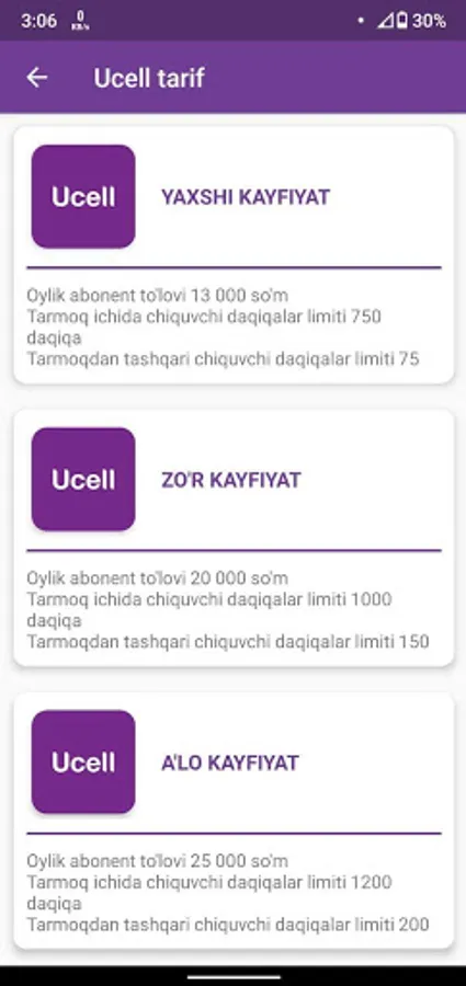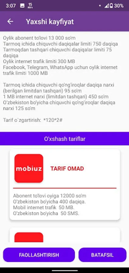 Endi Internet paketlar harid qilish, qo'shimcha xizmatlarni yoqish yoki o'chirish uchun USSD so'rovlarni jo'natishga hojat yo'q, shuningdek MobiUz, Uzmobile, Beeline, Ucell yangiliklaridan va aksiyalaridan birinchi bo'lib xabardor bo'lishingiz mumkin!
