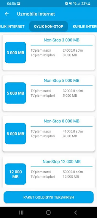 -internet paketlar harid qilish