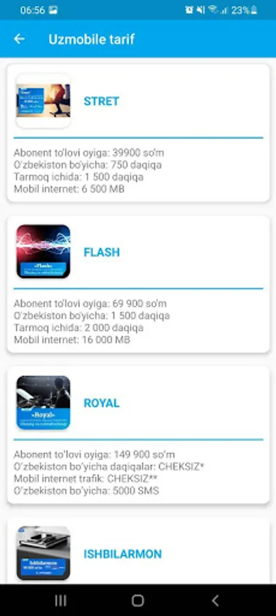 -tariflar haqida batafsil ma'lumotlar