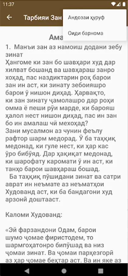 Tarbiyai Zan Modar Hoҳar. The gift of the dohili of the bar dorí ba baҳҳo ҳadischo wa ryvayato ovarda shudaast. Boz 50-amale, ki sharia zononroz he boz medorad navishta shudaad.