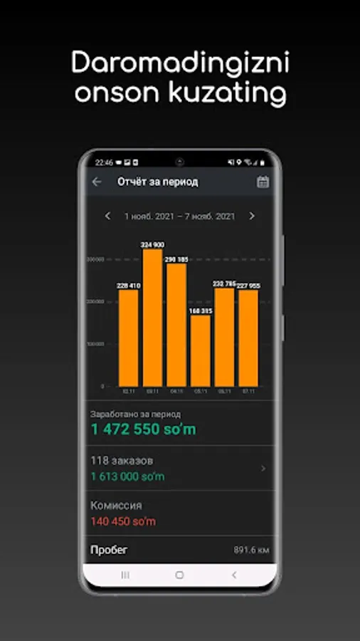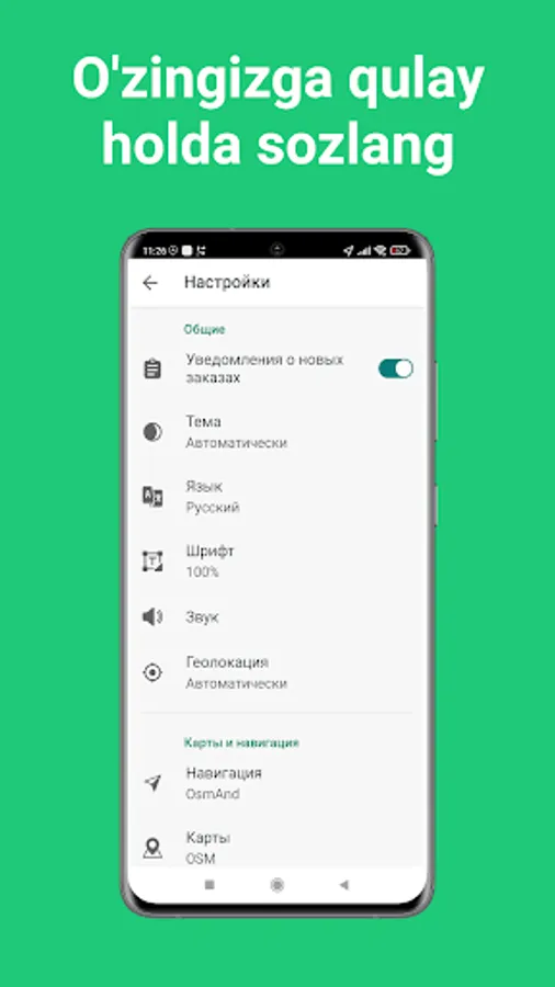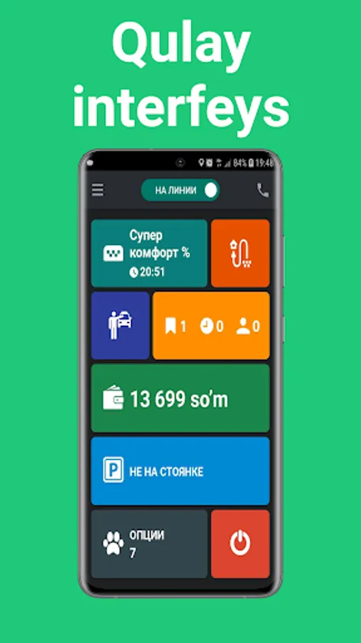Foydali sozlamalar, interaktiv yordamchilar va qulay interfeys har bir haydovchiga bir vaqtning o‘zida ko‘proq buyurtma berishga yordam beradi.