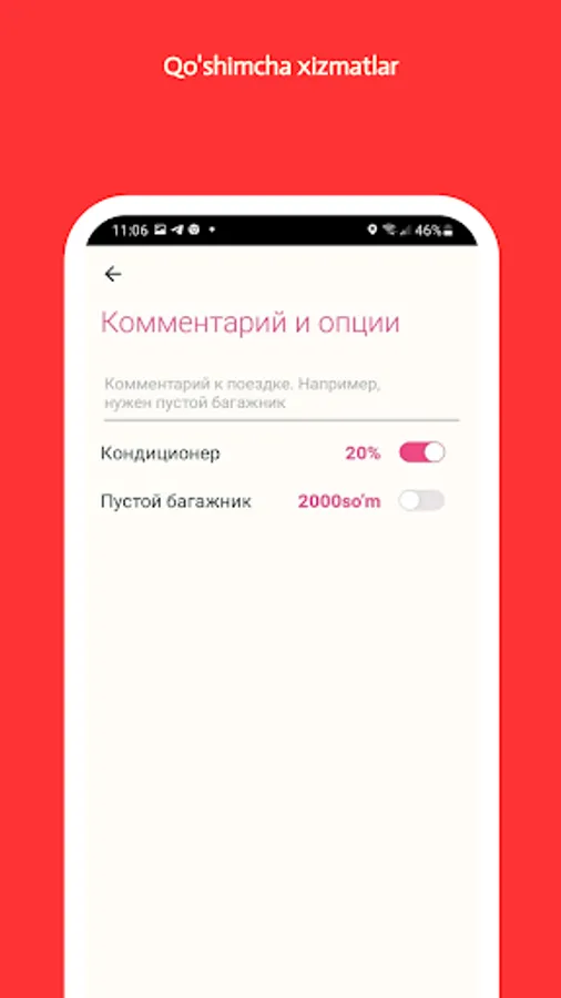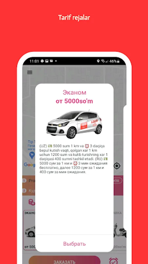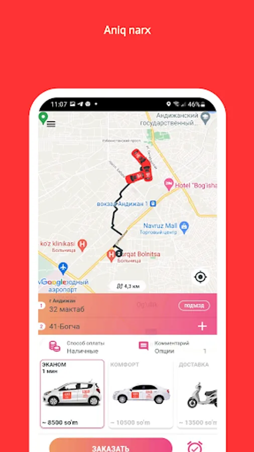Istagingizga qarab avtomobil turini yoki xizmatni tanlaysiz.