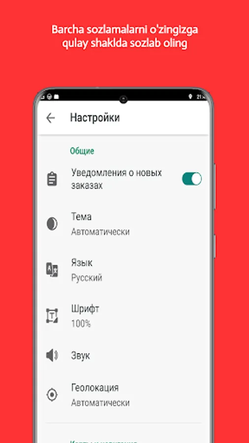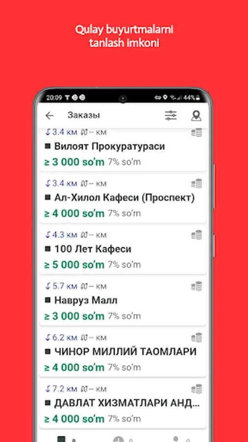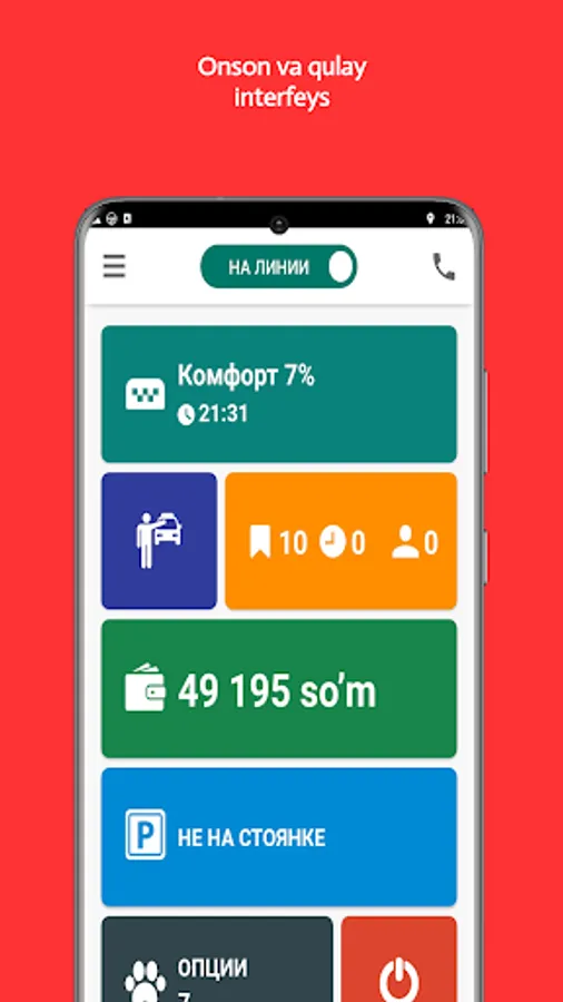 Foydali sozlamalar, interaktiv yordamchilar va qulay interfeys har bir haydovchiga bir vaqtning o‘zida ko‘proq buyurtma berishga yordam beradi.