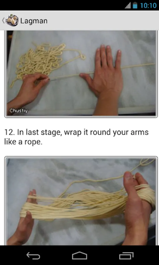 • home made noodles (Lagman, Laghman) with traditional pulling techniques;