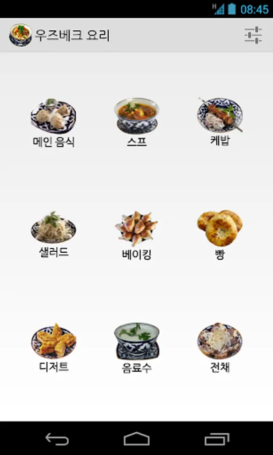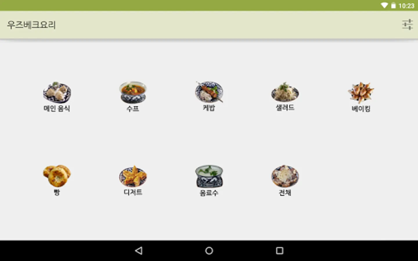 당신에게 휼륭한 조리법이 담긴 어플을 제공할 수 있어 매우 기쁩니다! 80여 가지의 우즈벡 음식과 약 60장의 사진이 단계별로 구성되어 있습니다.