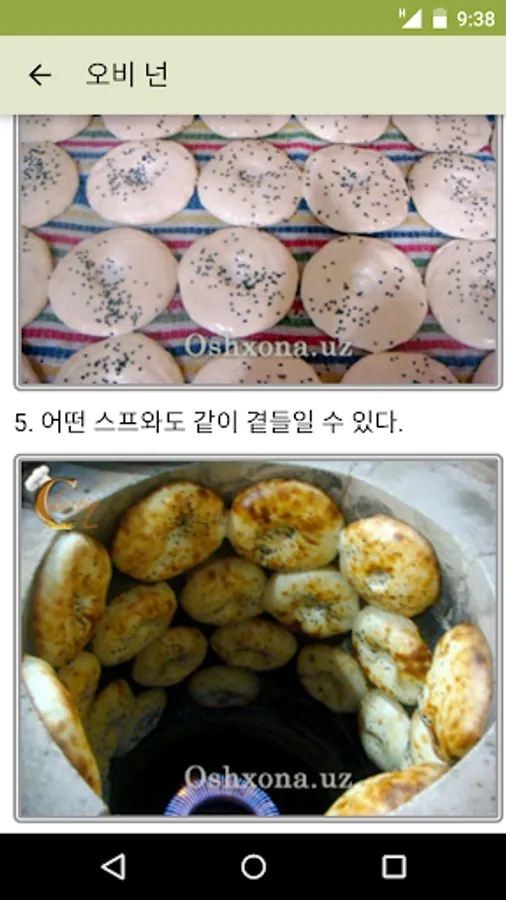- 중앙 아시아의 빵 종류 (예 : 파테르, 오비 논, 로치라)