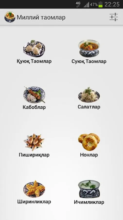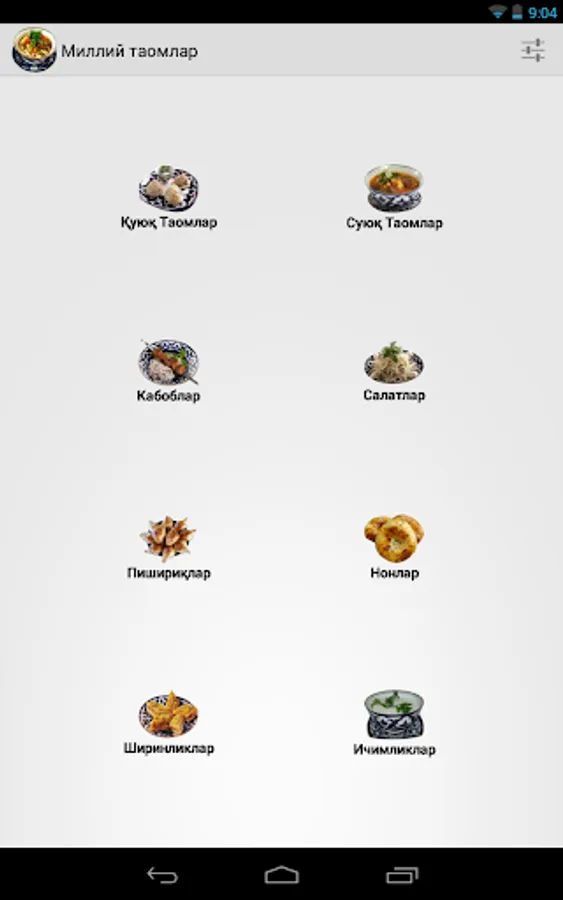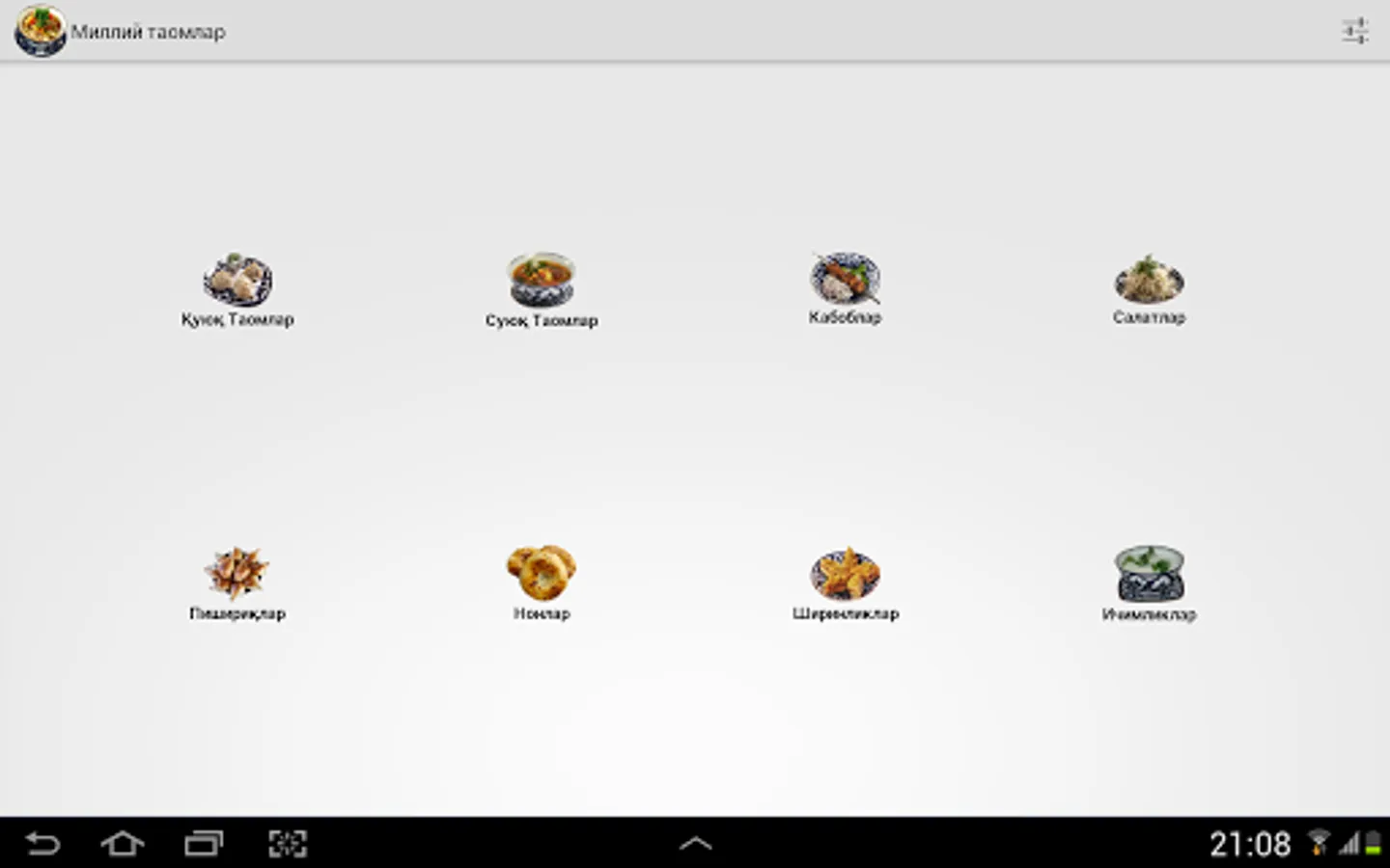 Мана энди палов, хоним, дўлма, шашлик, норин, оби нон, патир, сомса, юпқа, бўғирсоқ, чучвара, мастава, сумалак, нишолда ва бошқа кўплаб ноёб рецептлар қўл остингизда.