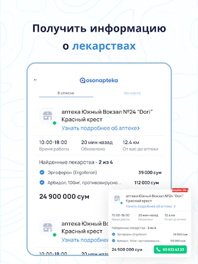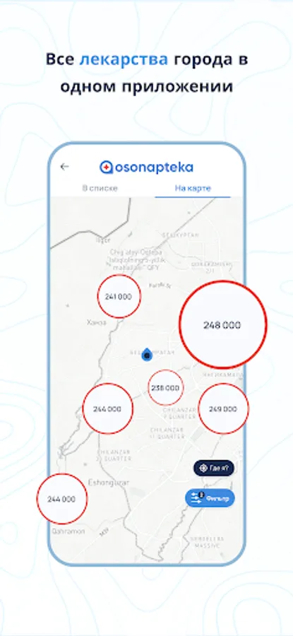 Find a cure? It's Oson! Directory of pharmacies throughout Uzbekistan.