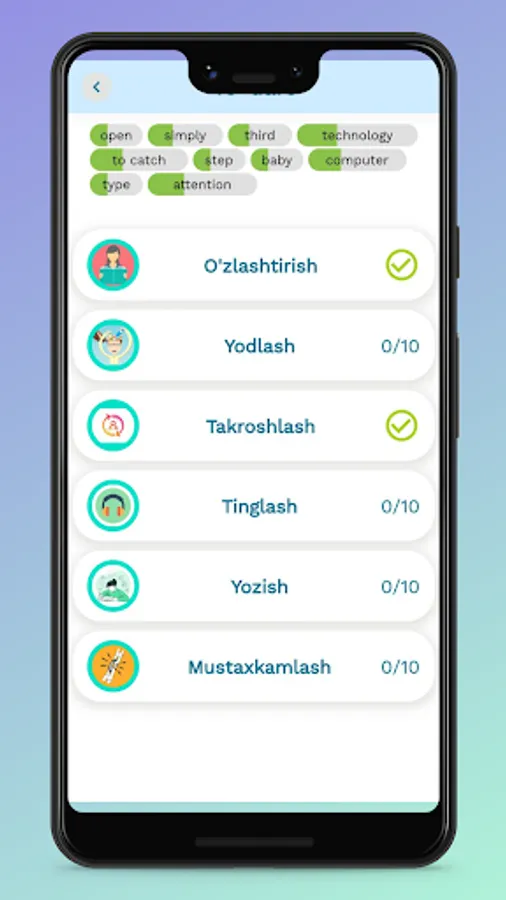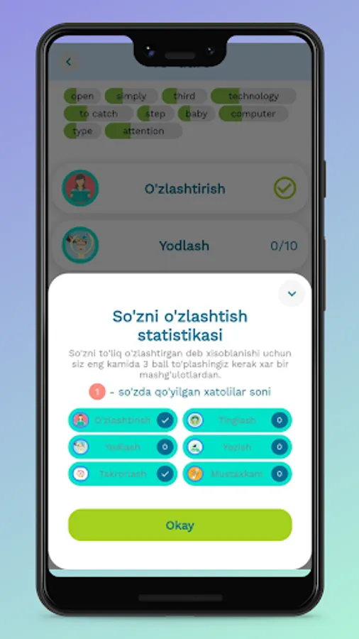 Endi Ingliz tilini o'rganish juda ham oson. Buning uchun siz ilovadagi topshiriqlarni bajarishingiz va testlarni yechishingiz kifoya.