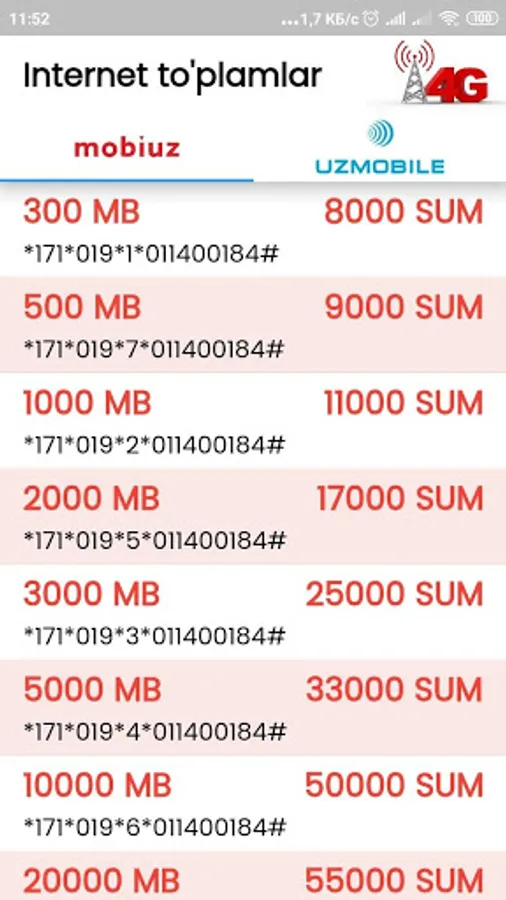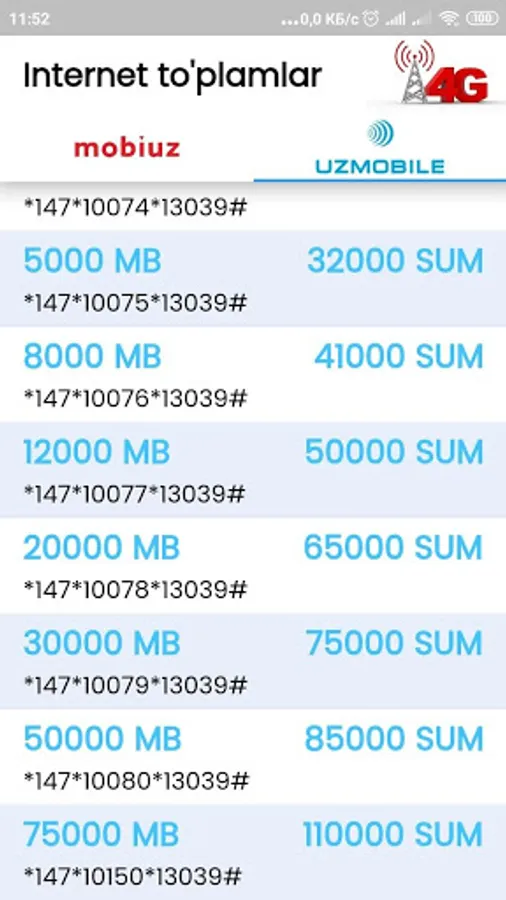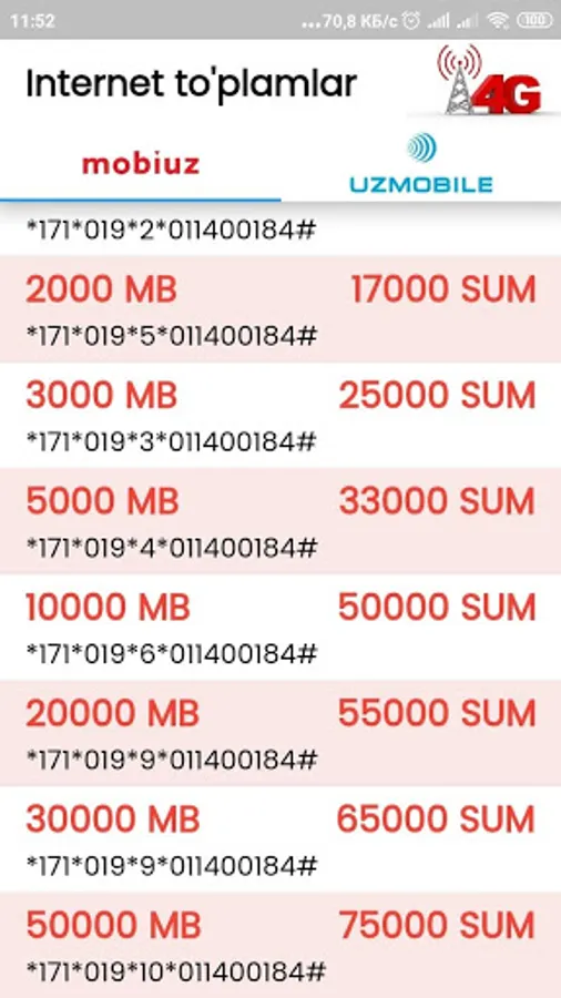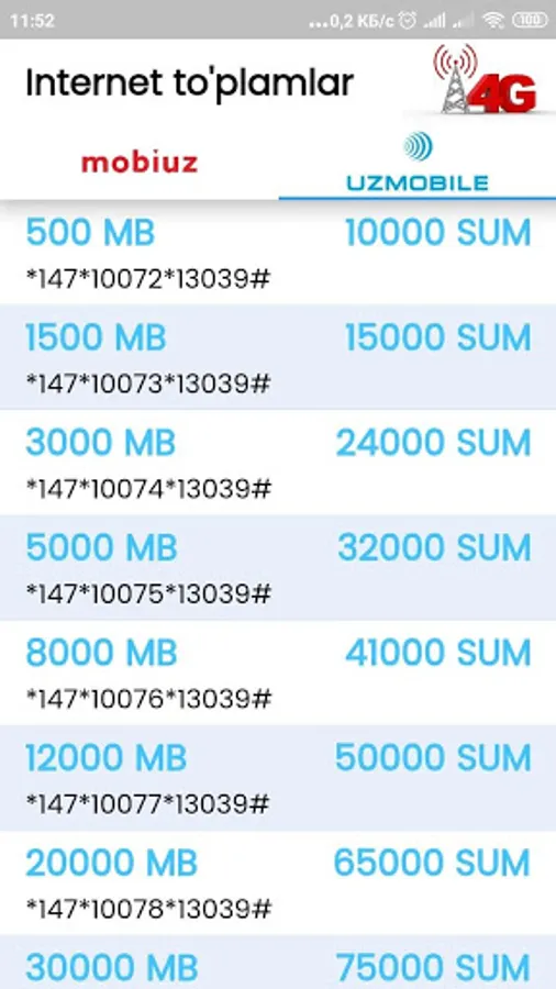 USSD KODLAR Uztelecom Mobiuz U Screenshots