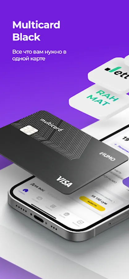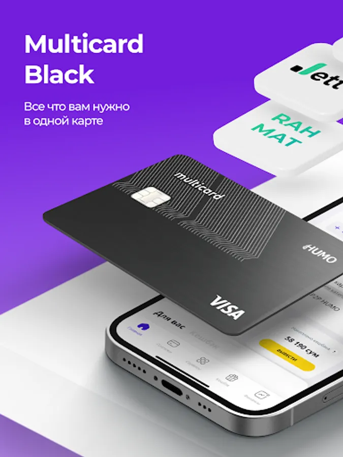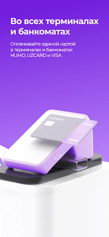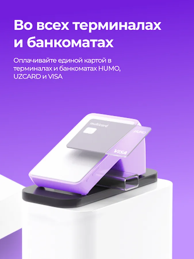 Multicard will replace all your bank cards with one smart card with the ability to pay in any Humo, Uzcard or Visa terminals.