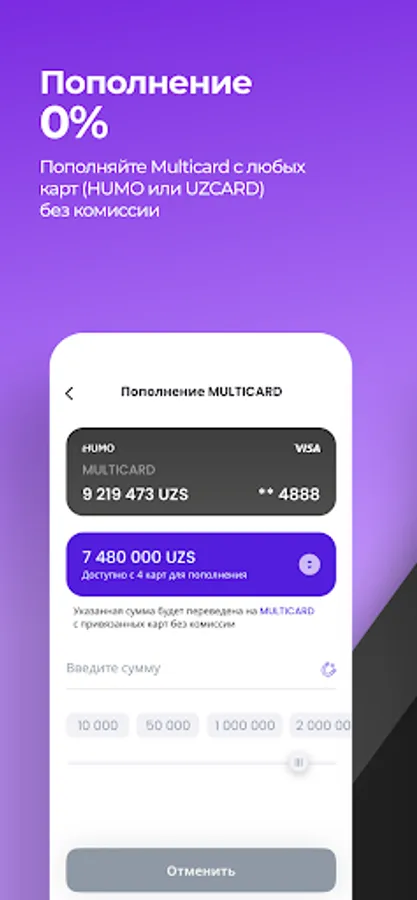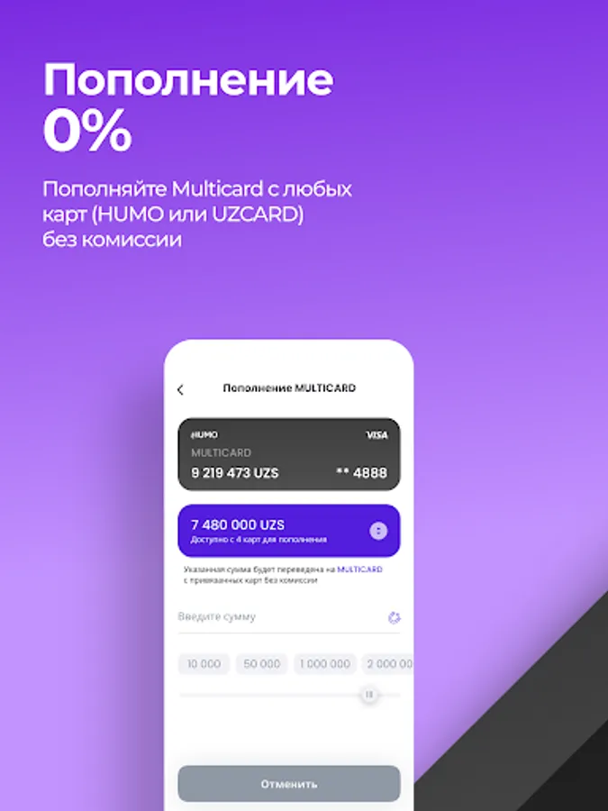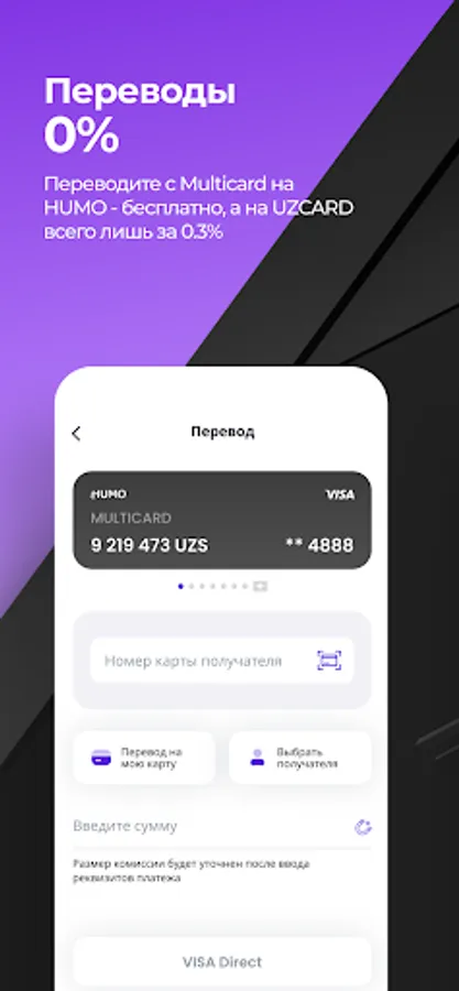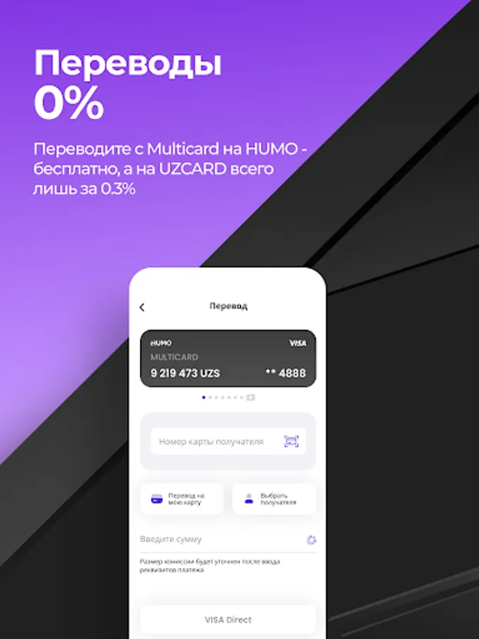 - Transfers from Multicard to Humo - free of charge, and to Uzcard only 0.3%;