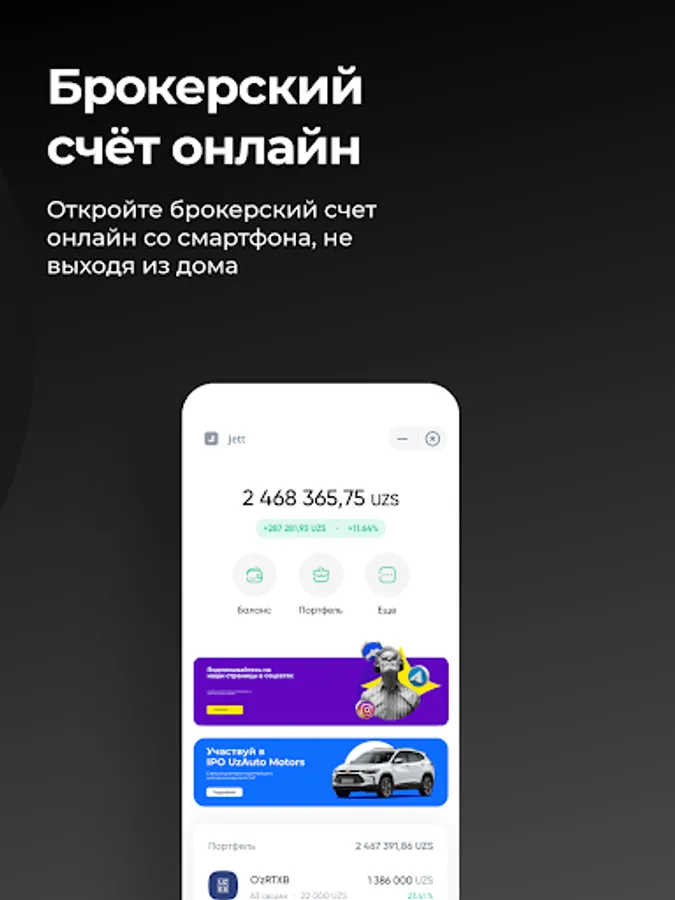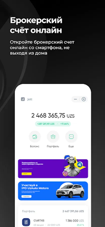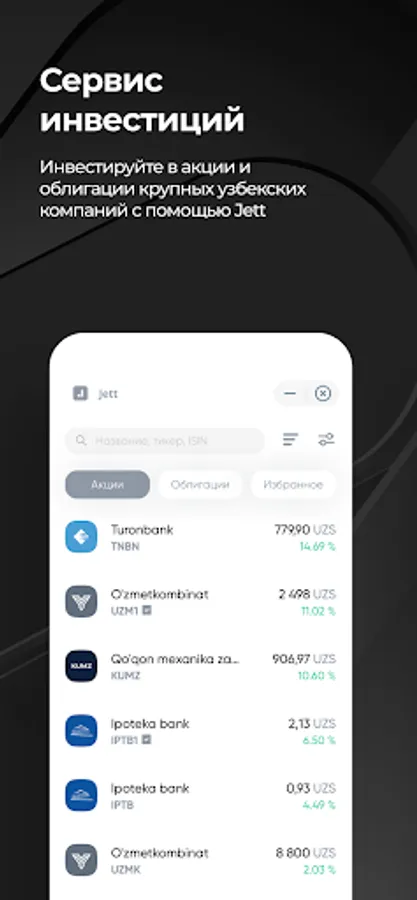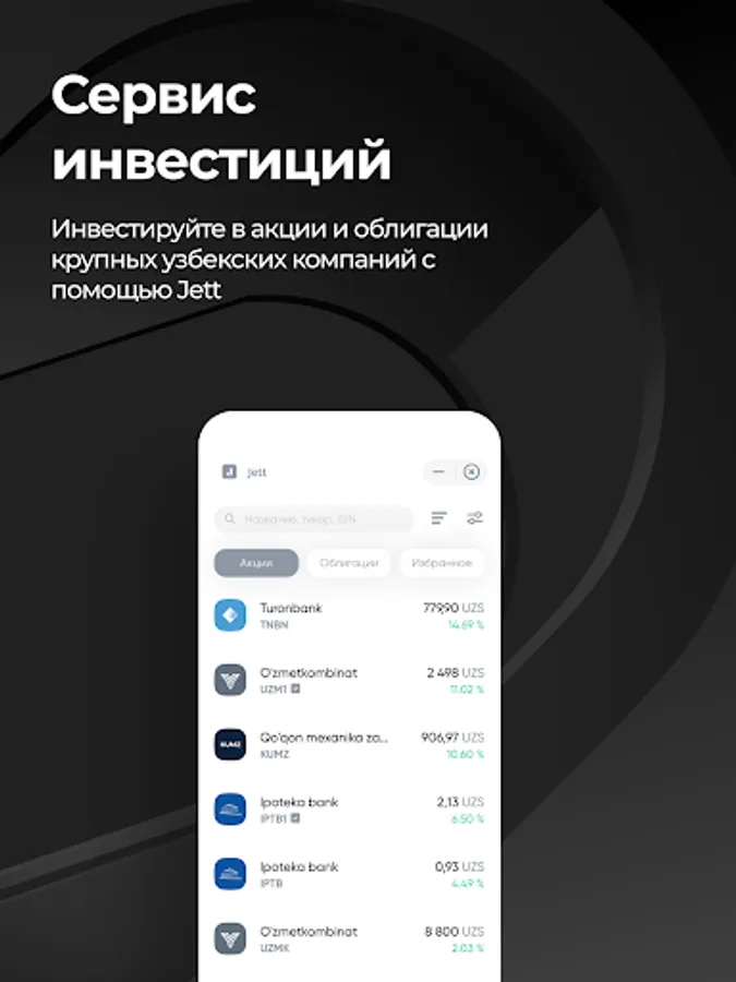 Invest in shares of local companies and participate in an IPO on the Tashkent stock exchange through the Jett investment service.