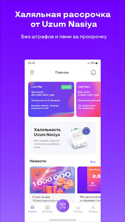 Uzum Nasiya provides its services in accordance with the norms and canons of Sharia. There are no fines or penalties. Uzum Nasiya is an open and honest service.