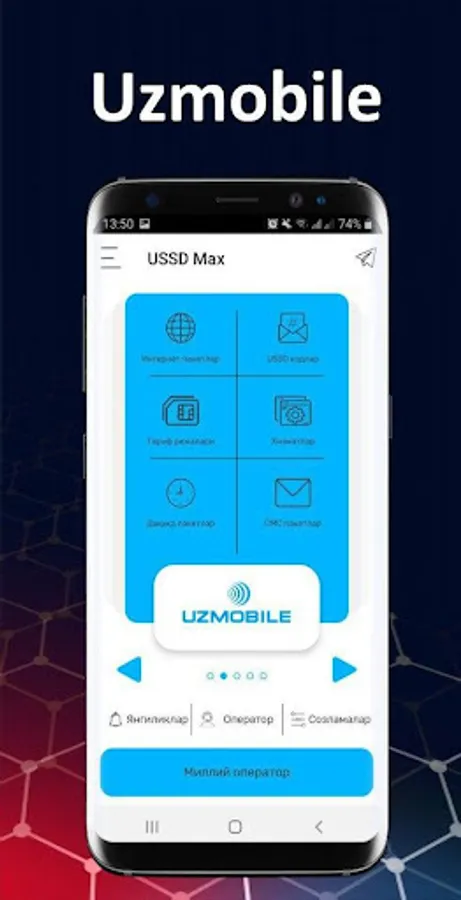 By installing USSD Max you will receive answers to all questions and the following opportunities from mobile operators in Uzbekistan - UMS - UMS, Uzmobile - Uzmobile, Ucell - Yussel, Beeline Beeline and Perfectum - Perfectum: