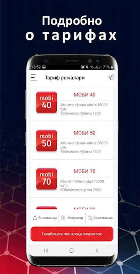 Xizmat narxi va tariflari haqida ma'lumotlar kerakmi?