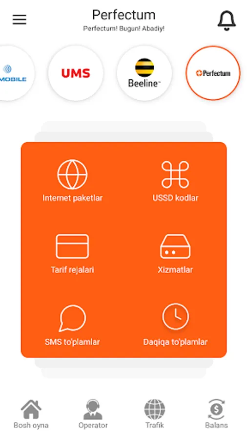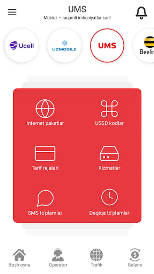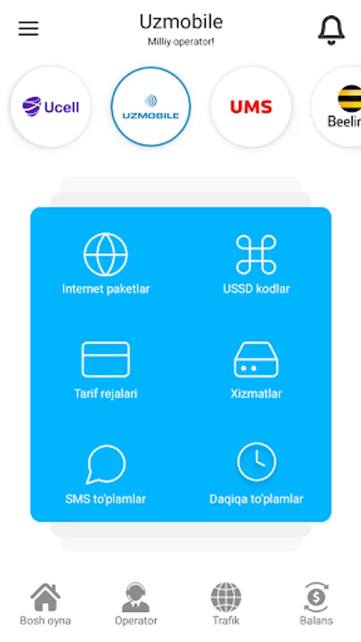 Trafik sotib olish yoki Tarif almashtirish uchun qandaydir tushunarsiz USSD kodlarni terib, har bir so'rovni kutib o'tirishdan charchadingizmi? Operatorning javobini bir necha kunlab kutib qolish jonga tegdimi?