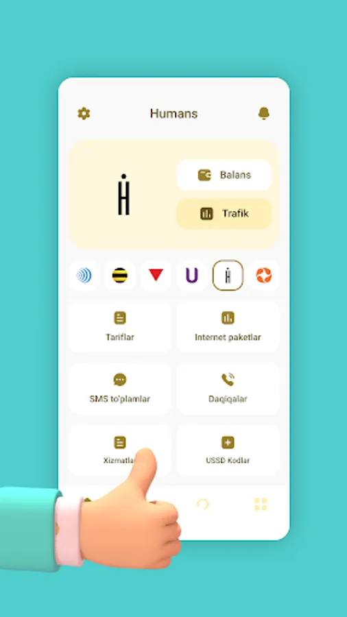 Humans USSD kodlari, Mobiuz, Uzmobile, Ucell, Beeline, Perfectum aloqa kompanyalarining barcha USSD kodlari ma'lumotlari va xizmatlariga oson ulanish yoki o'chirish.