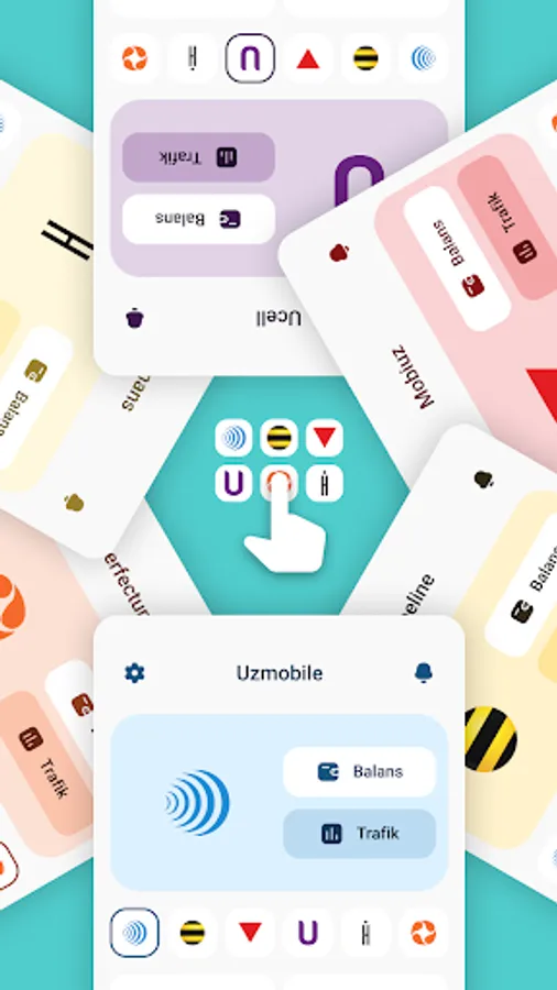 Mobil aloqa kompanyalarining eng yangi tariflar, internet paketlar, aksiyalar, bonuslar va yangiliklaridan xabardor bo'ling, tariflarni qulay almashtiring, internet paketlar, sms paketlar, daqiqa paketlarini osonlik bilan sotib oling. Buning uchun mobil operatorlar saytini, sahifalarini qidirib kodlarni ahtarib USSD kodlarini qo'lda terib vaqt sarflab o'tirish shart emas, endi hammasi oddiy, sodda va qulay eng muhimi hardoim yoningfizda qoing'di