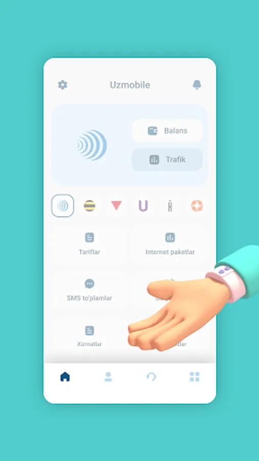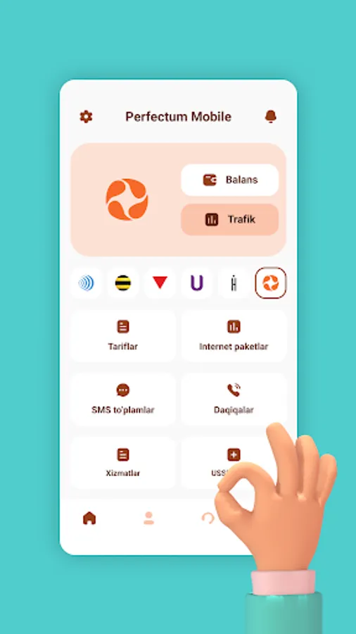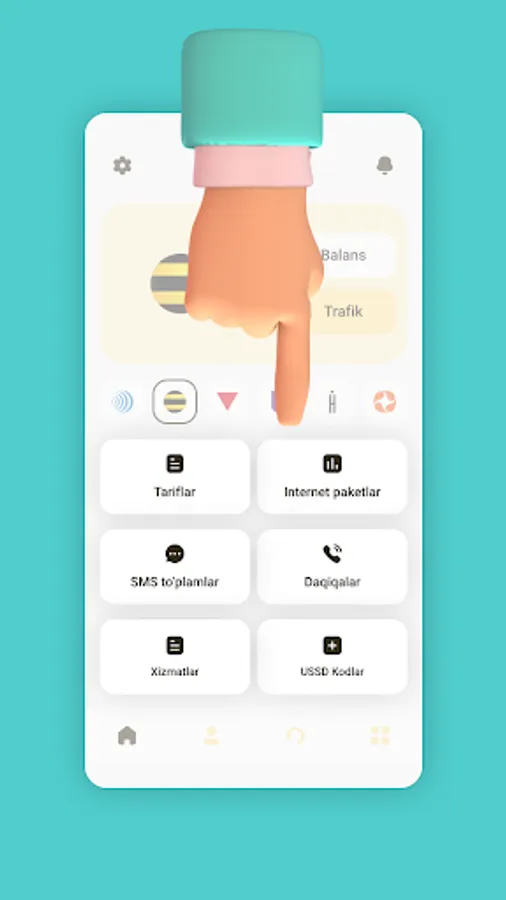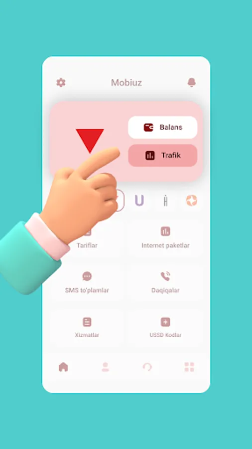 Balans, Trafik, SMS, Daqiqalar qoldig'ini bir bosish bilan aniqlash.