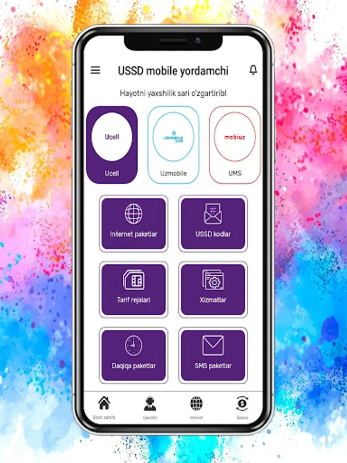 USSD MOBILE YORDAMCHI dasturida siz o’zingizga kerakli barcha ma’lumotlarni topishingiz va yangiliklardan xabardor bo’lishingiz mumkin
