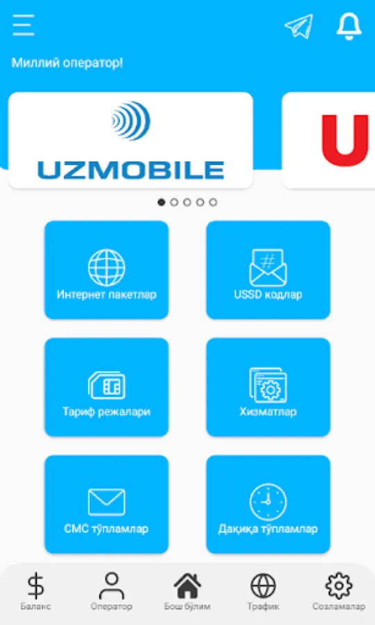 Dasturni o'rnatganingizdan so'ng O'zbekiston mobil aloqa operatorlari UMS Uzmobile Ucell Beeline va Perfectum haqida barcha savollaringizga javoblar olasiz va quyidagi imkoniyatlarga ega bo'lasiz: