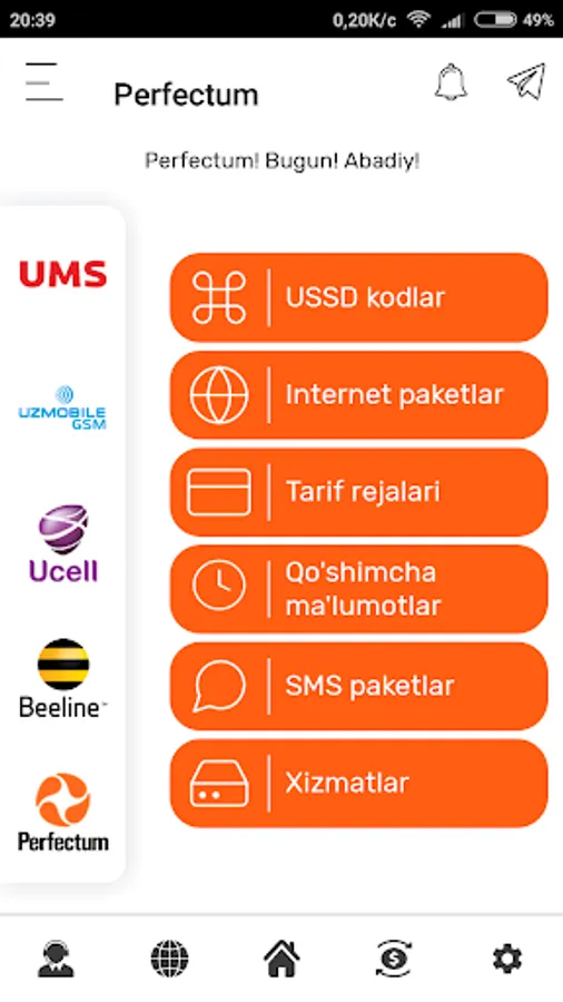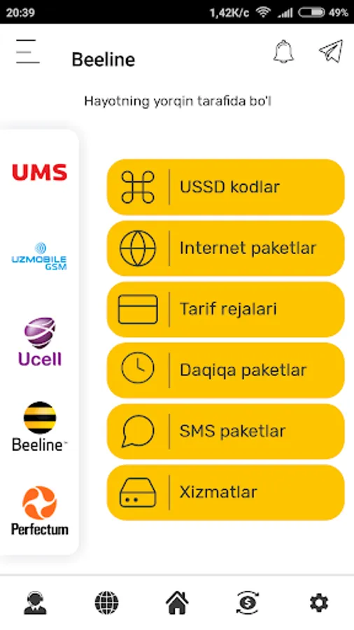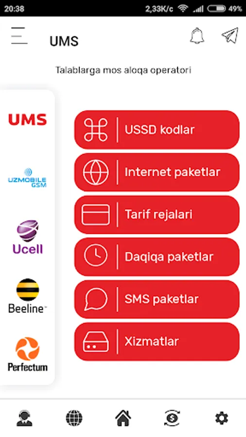 USSD Pro dasturni o'rnatganingizdan so'ng O'zbekiston mobil aloqa operatorlari UMS Uzmobile Ucell Beeline va Perfectum haqida barcha savollaringizga javoblar olasiz va quyidagi imkoniyatlarga ega bo'lasiz: