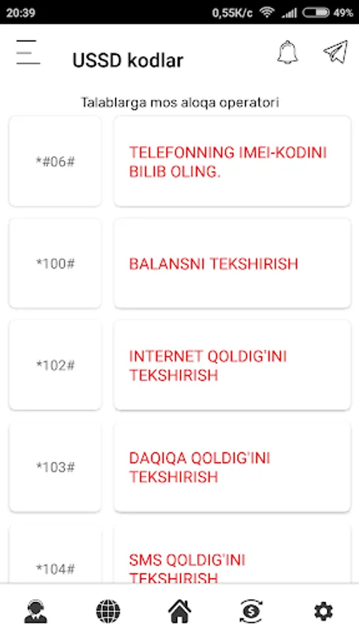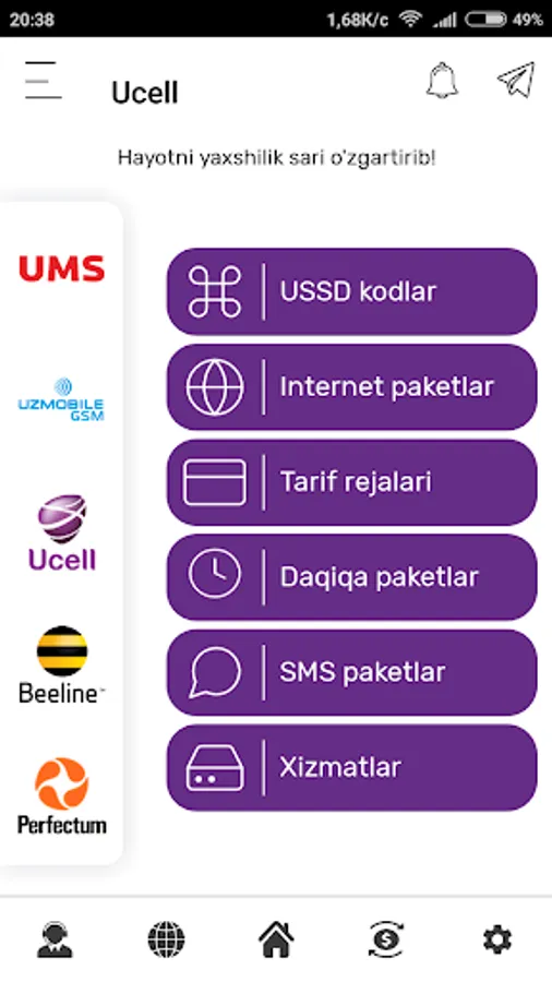 By installing USSD Pro you will receive answers to all questions and the following opportunities from mobile operators of Uzbekistan - UMS - UMS, Uzmobile - Uzmobayl, Ucell - Usel, Beeline Beeline and Perfectum - Perfect: