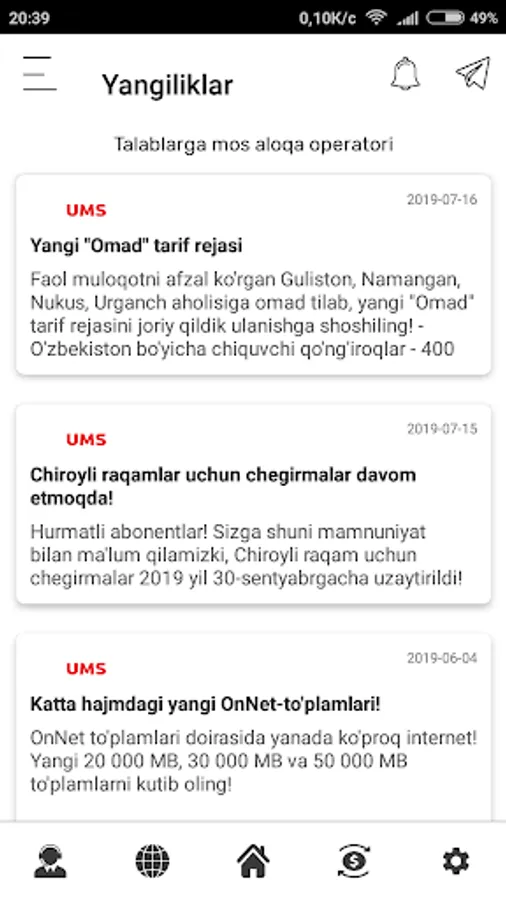 ✭ Internet, sms va ovozli paketlarni faollashtirish