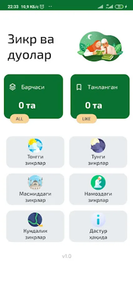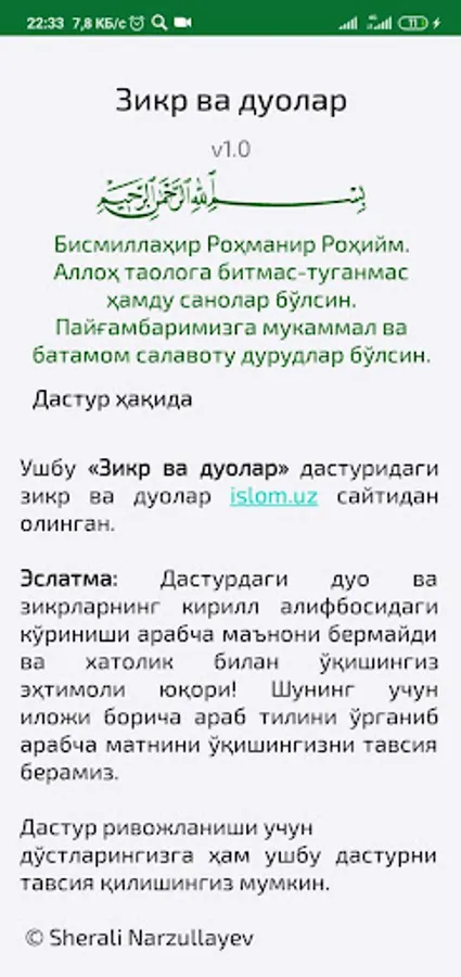 Ушбу «Зикр ва дуолар» дастуридаги зикр ва дуолар https://islom.uz сайтидан олинган.