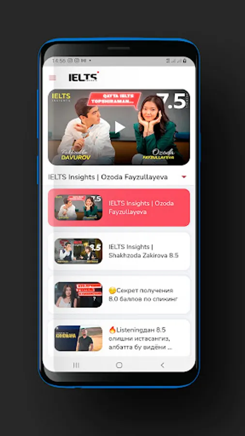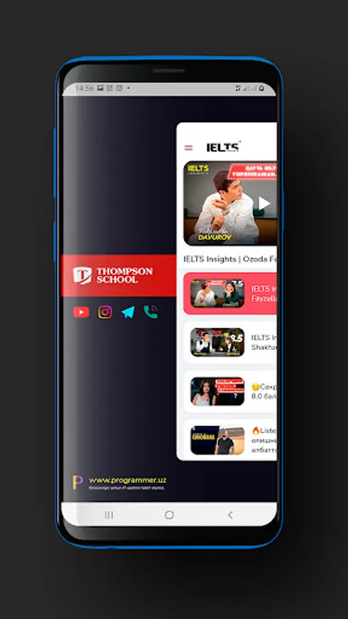 Ilova Thompson School o'quv markazi doirasida tashkil etilgan IELTS Insights ko'rsatuviga asoslangan bo'lib, unda siz IELTS imtihonida yuqori natijalarga erishgan kishilar bilan suhbatlarni, ularning bosib o'tgan yo'llarini tomosha qilishingiz mumkin.