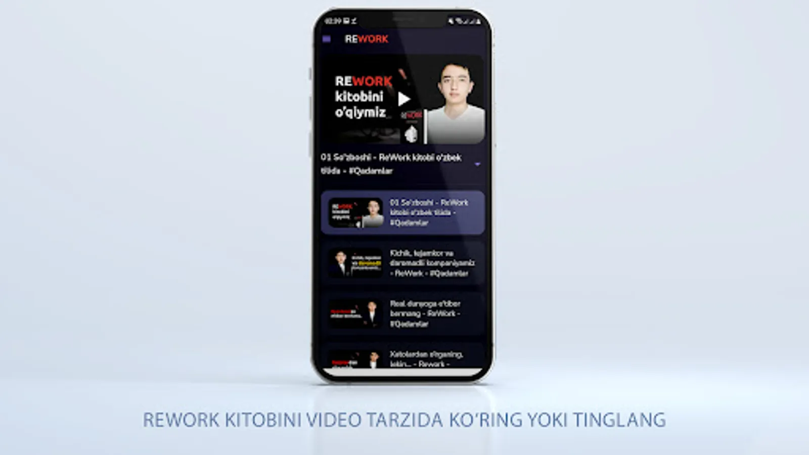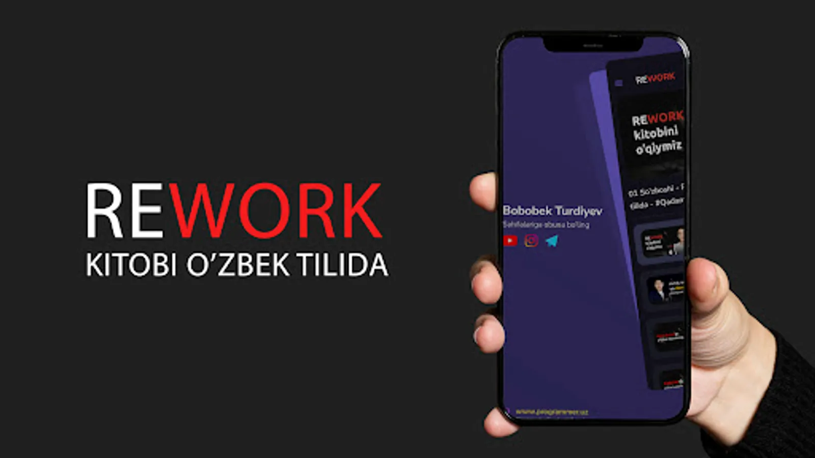 Bobobek Turdiyev tomonidan REWORK kitobi alohida bo'limlar tarzida o'qib berilgan. Siz uni tinglashingiz/ko'rishingiz va kitob ma'lumotlaridan xabardor bo'lishingiz mumkin.