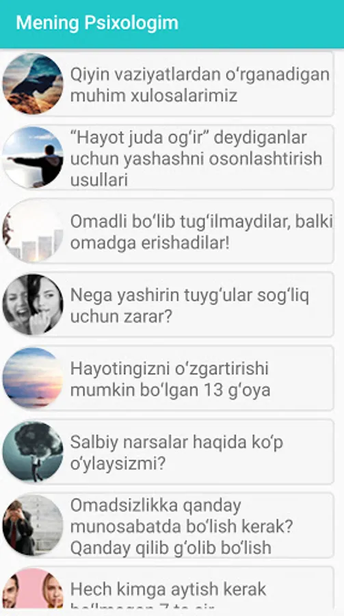 In this mobile application you will find useful information about human psychology, including training the will, avoiding anger, thinking exercises, ways to stimulate the brain and much more.