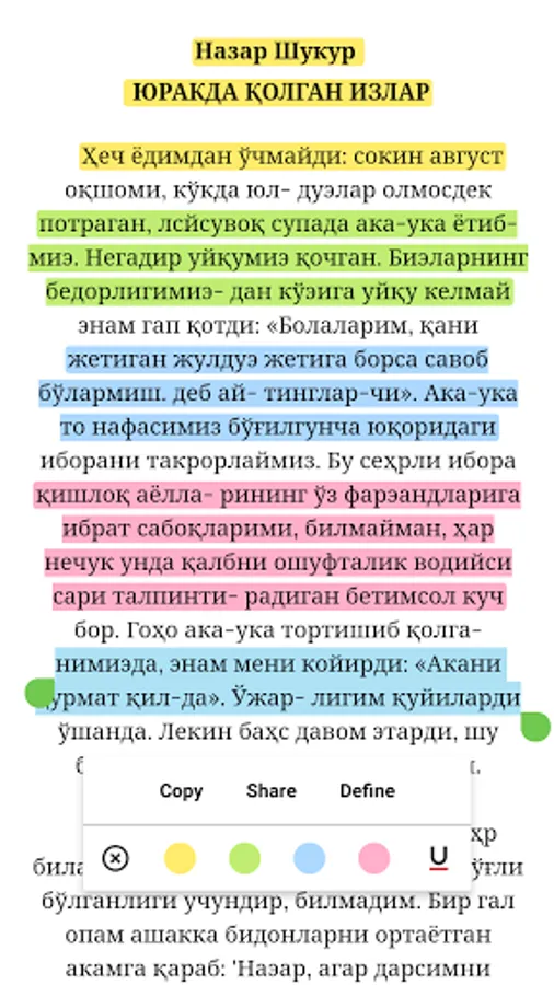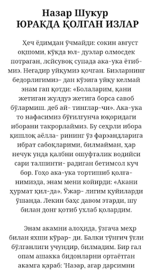 Nazar Shukur o'z hayoti davomida ko'p kitoblar nashr etgan mashxur kitoblari ko'kdagi umir, qishloq yollarida, vaqt xiyobonida, meni kechir muxabbat, vido, sen qaytmasang, saylanma 2006, kabi she'riy kitoblar nashr etgan. Nazar Shukurning mumtoz she'rlari kitobi yurakda qolgan izlar bo'lib Nazar Shukurning eng sara she'rlari hisoblanadi bugun sizlarga jahonga mashxur bo'lgan qalamkashning o'zbek nasri she'rlarini tafsiya qilamiz.