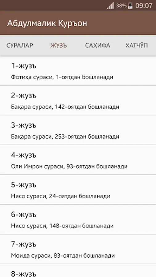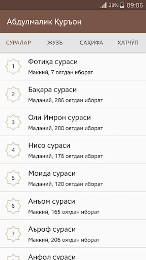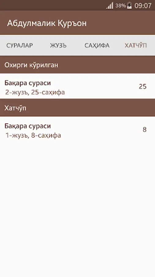 Otgan sanada Siz azizlarga "Abdulmalik Kuon" nuskhasining android kurilmalar uchun mobil ilovasini takdim kilgan edik. Bugun esa uning "egiz" and, diyorimizdagi kўpchilik қorilar ўқib kelayotgan kadimiy mushaf bosmalaridan biri, қorilar ўrtasida "Abdurrakhmon Қur'on" nomi bilan mashhur bўlgan Қur'on nuskhasining android қurilmalar uchun mobil ilovasi thaiorlandi. Unda ushbu mushaf va undagi belgilar haqida qimmatli ma’lumotlar ham ўrin olgan. Marhamat, қўchirib oling!