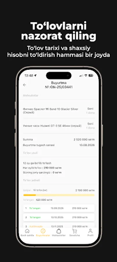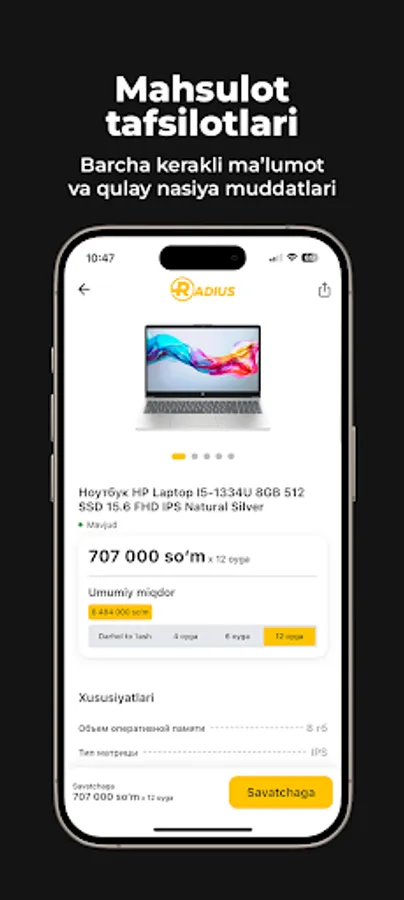 Radius Nasiya – 12 oygacha muddatli to‘lov xizmati.