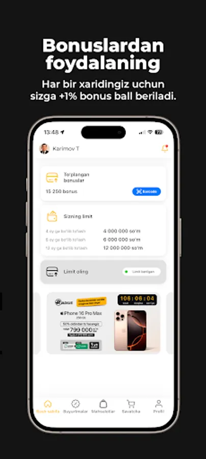 Harid qilgan vaqtda to'plangan ballardan 30% gacha chegirmaga ishlatishingiz mumkin!